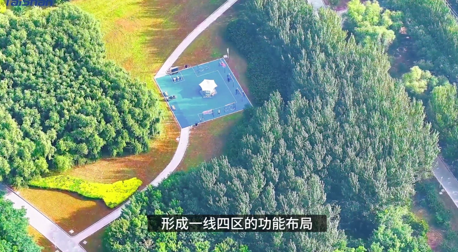 公园以智慧步道为主线,一步道两侧分别建设4个功能区,形成一线四区的功能布局,一线是全长1.5km的智慧步道。